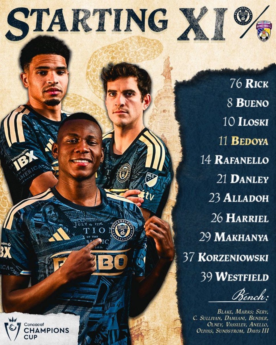 In midfield, Jesús Bueno stepped in for the injured Jovan Lukic (rib issue), alongside Danley Jean Jacques, captain Alejandro Bedoya, and Milan Iloski. Up top, Stas Korzeniowski and Ezekiel Alladoh led the line, with both making their club debuts.